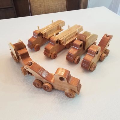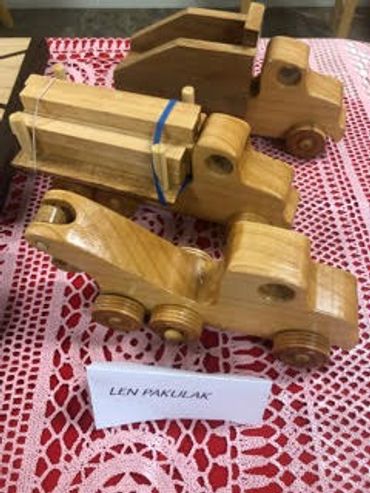 I enjoy making toys for our Christmas gifts to the Food Bank users. However, in the past, making toys in the September thru December period conflicts with my annual wine-making, so during the pandemic lock-down, I started making toys in February. Ken Walker, as always, was generous of his time to supply the alder wood and sized it to my requested dimensions. Because I live in a Watermark condo, I'm restricted to using the Watermark shop which is well used by several condo owners. I donated my scroll saw and oscillating spindle sander from my old shop to the Watermark shop, so that makes toy-making much easier. The alder wood is easy to work, sands well and looks pretty good after five coats of wipe-on varnish. As the attachment photos show, I made six wooden toy trucks this year, and they are all finished well ahead of the normal early December date, and will not complicate my wine-making. Lesson is: start early!!